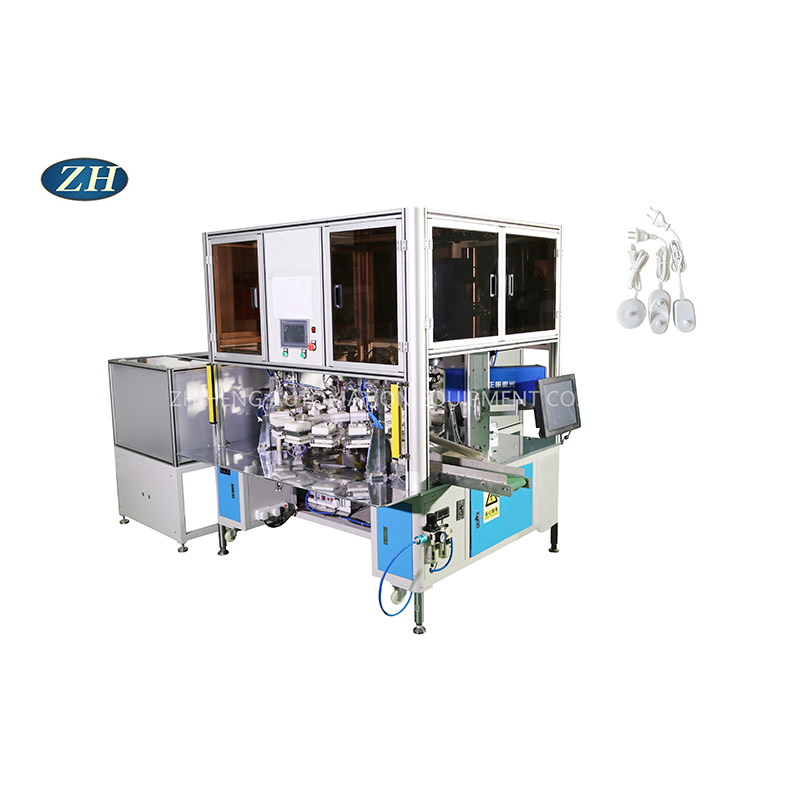 1، پوشش بالایی تغذیه دستی. 2، آزمون فعلی. 3، مقاومت در برابر تست ولتاژ. 4، پوشش پشتی تغذیه خودکار. 5، جوشکاری اولتراسونیک خودکار. 6، تست جریان بدون بار. 7، بار تست جریان. 8، علامت گذاری لیزری خودکار. 9، خالی کردن خودکار محصولات خوب و بد.